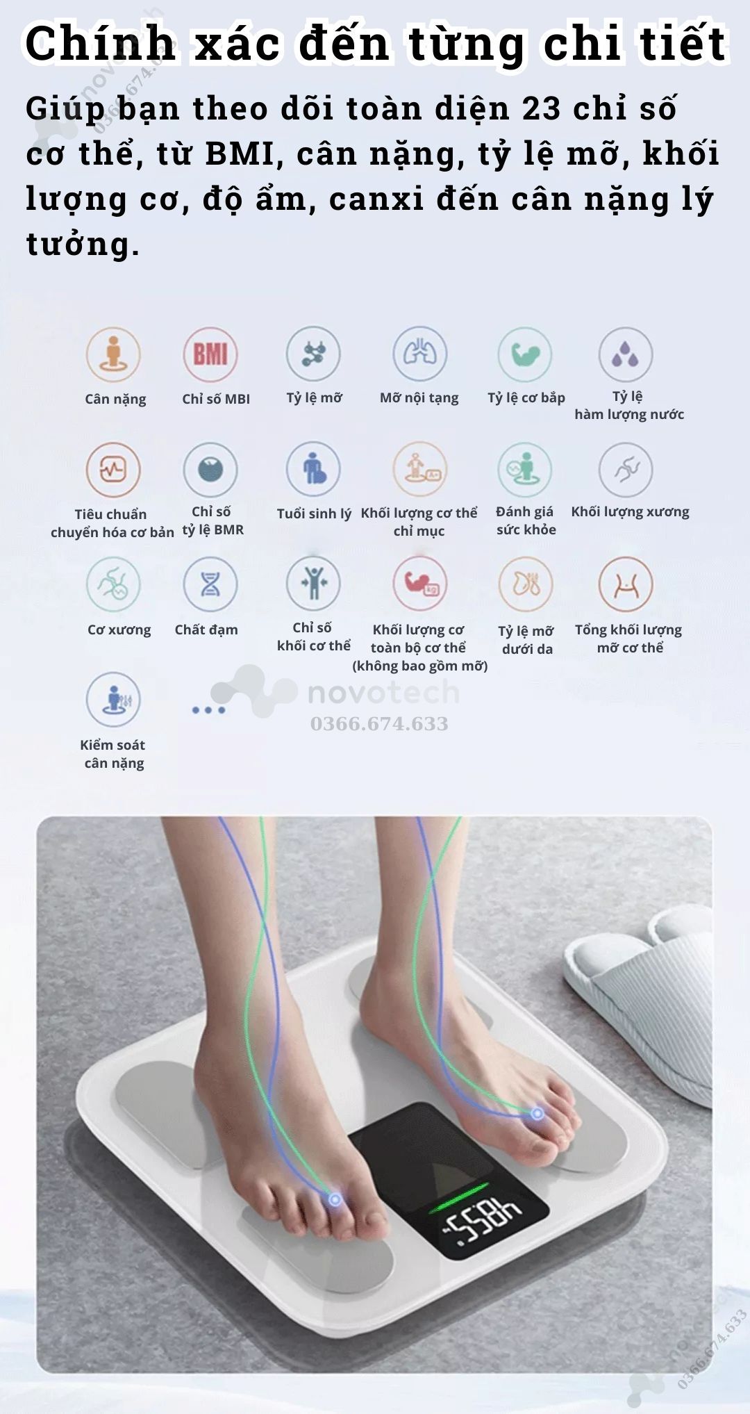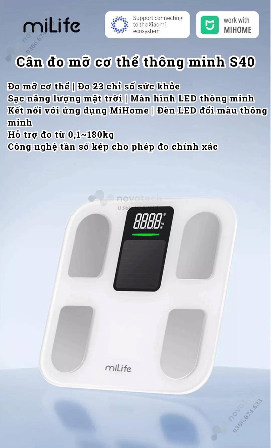 Cân điện tử Xiaomi Milife S40 – phân tích 23 chi số sức khỏe
