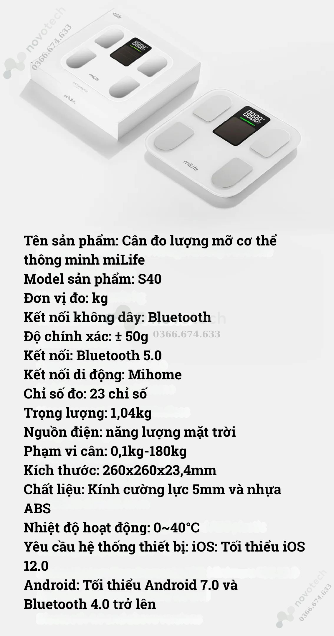 Tên sản phẩm Cân đo lượng mỡ cơ thể thông minh miLife