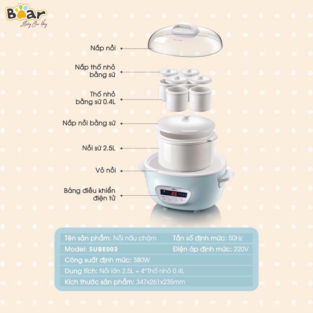 | Tên sản phẩm | Nồi nấu chậm Bear 2.5L SUBE003 |