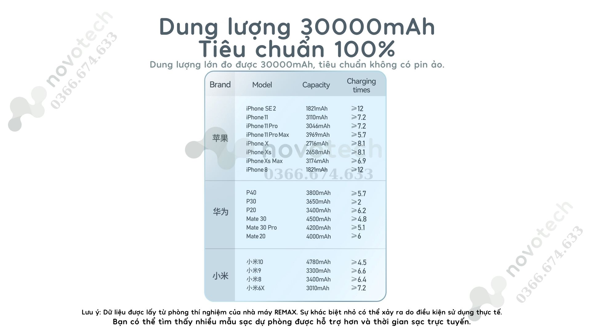 REMAX RPP-167 được trang bị dung lượng lên đến 30,000mAh, cho phép bạn sạc nhiều lần cho các thiết bị di động như điện thoại, máy tính bảng, và các thiết bị điện tử khác. Với dung lượng này, bạn có thể hoàn toàn yên tâm về nguồn năng lượng dự trữ khi di chuyển.