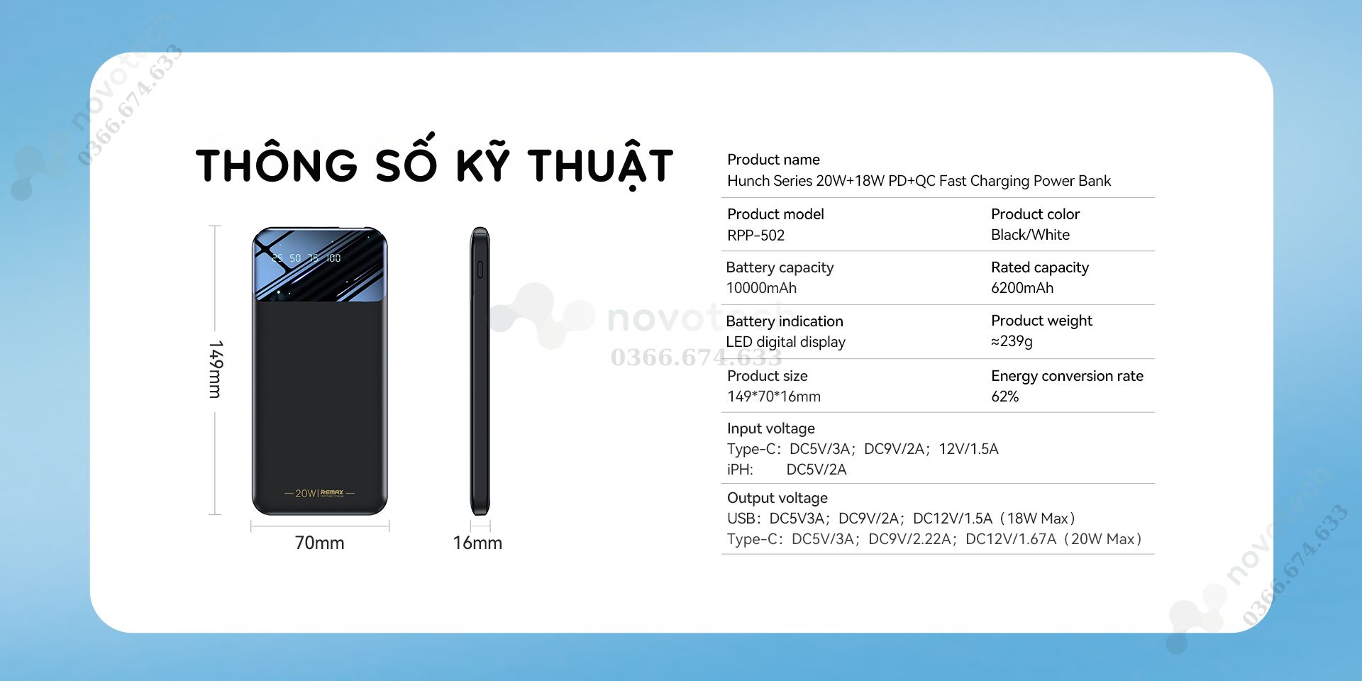 4. Thông Số Kỹ Thuật Sạc Dự Phòng Remax RPP-502