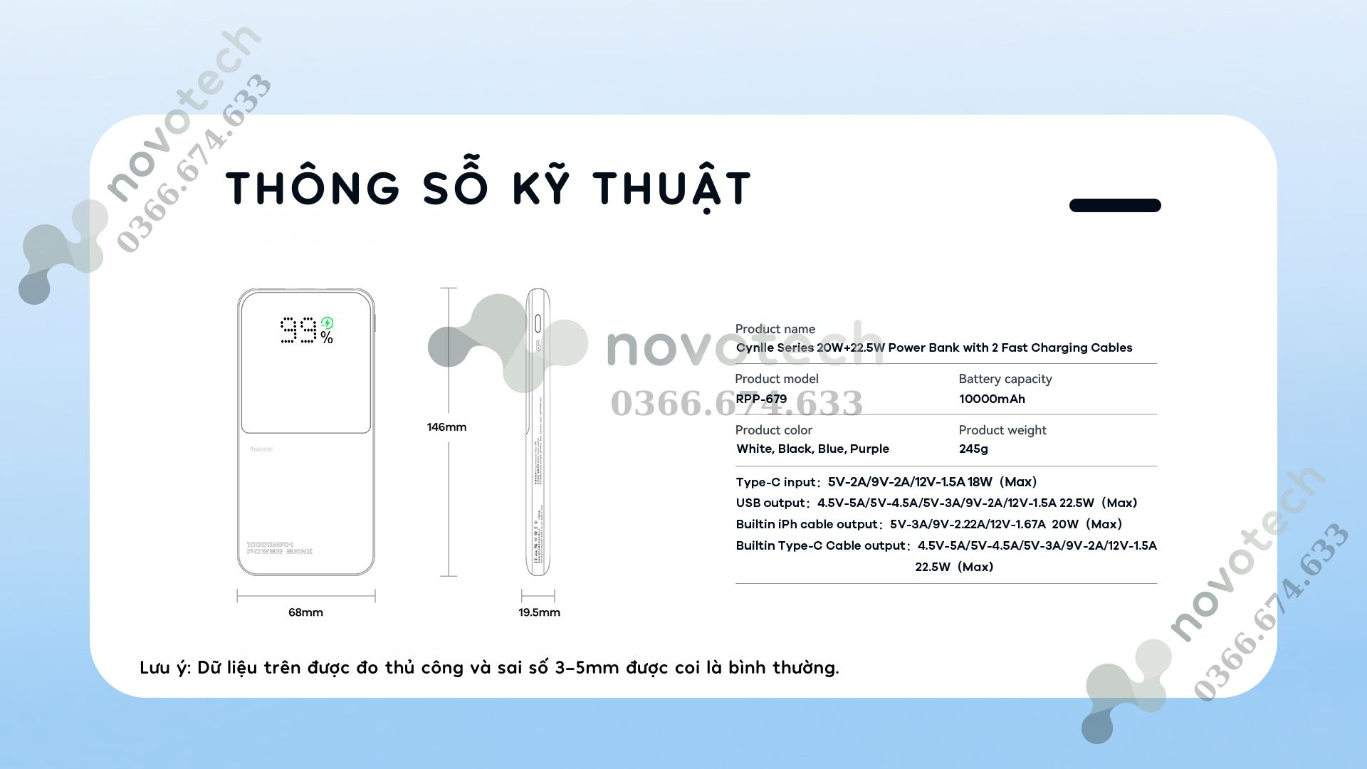 3. Thông Số Kỹ Thuật Sạc Dự Phòng Remax RPP-679.