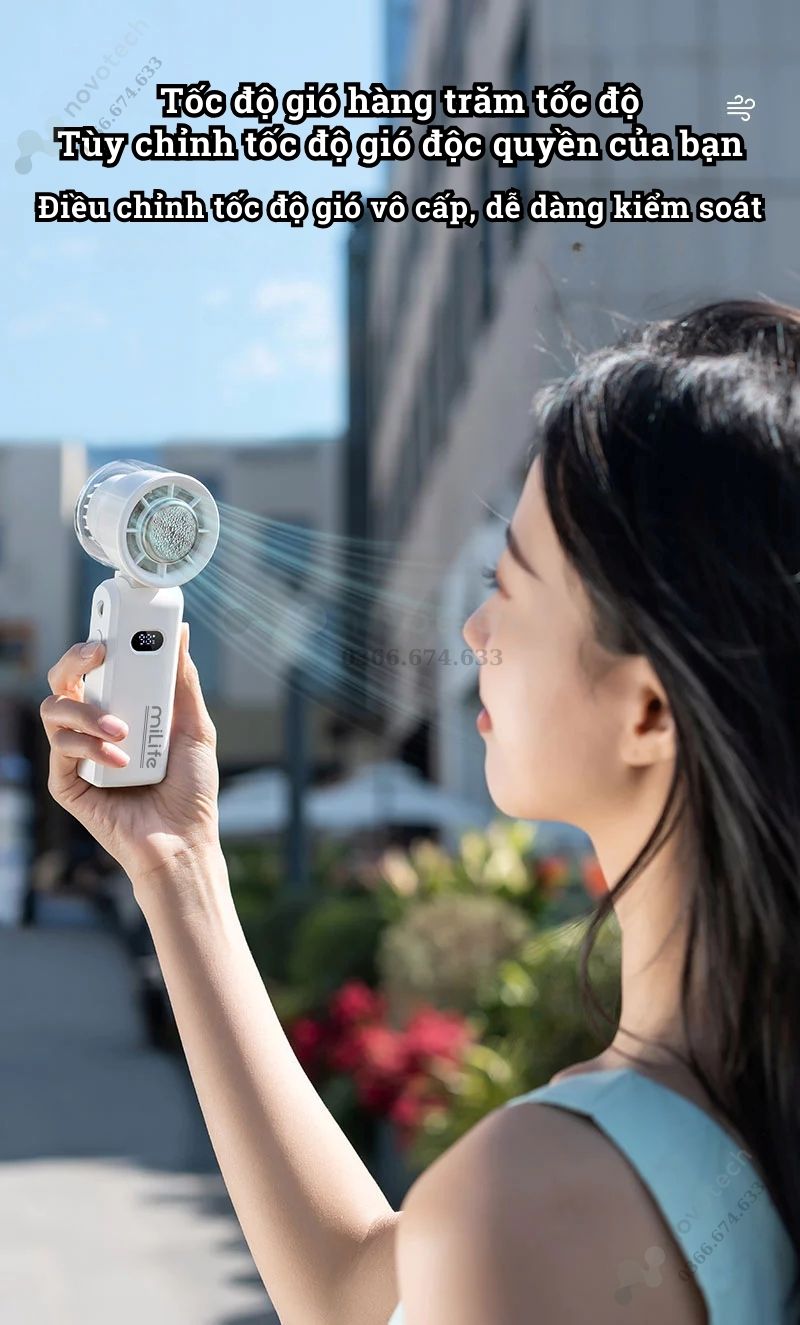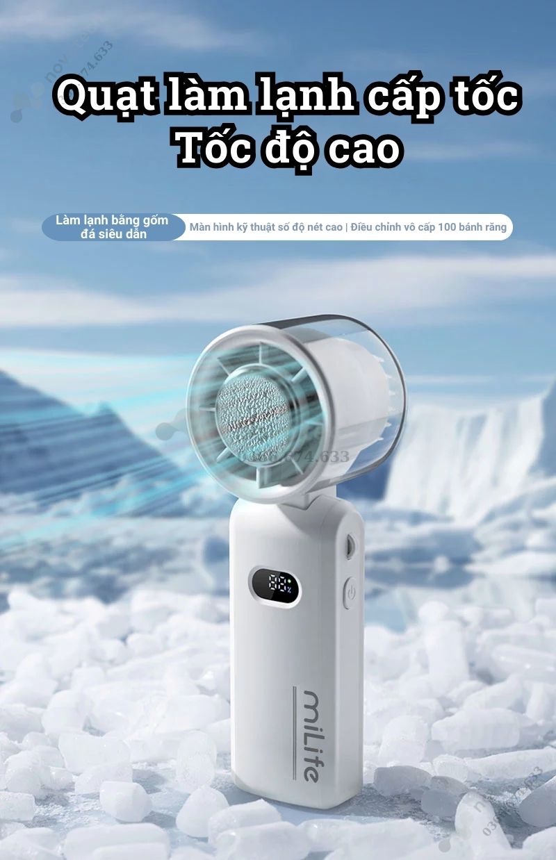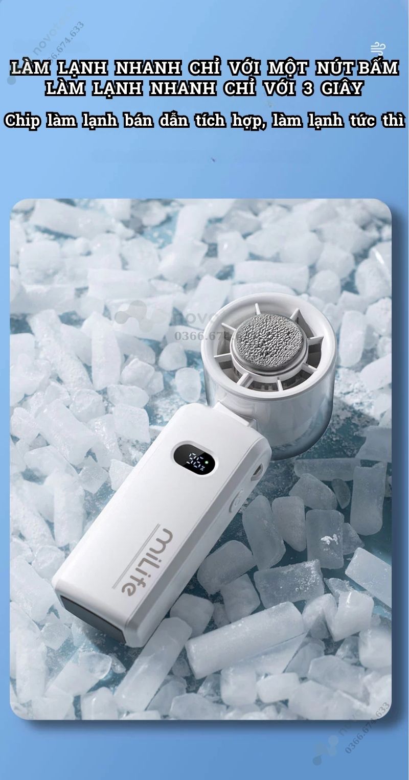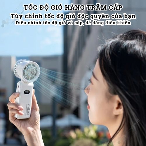Quạt cầm tay mini Milife F3P có sò lạnh, 100 cấp độ gió