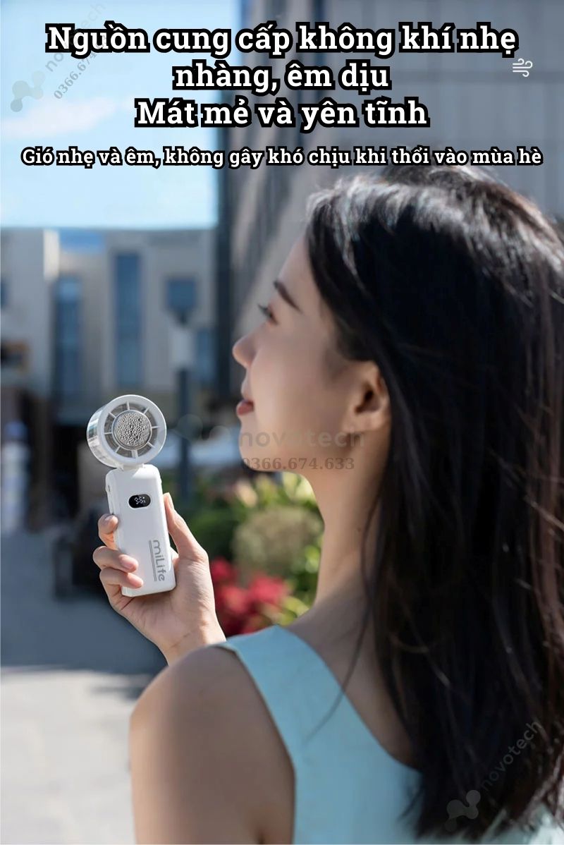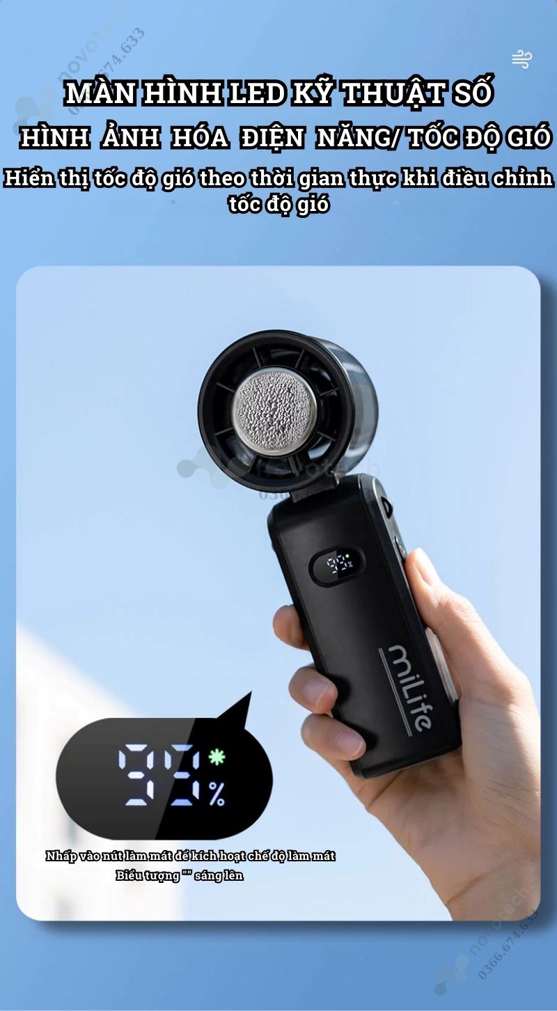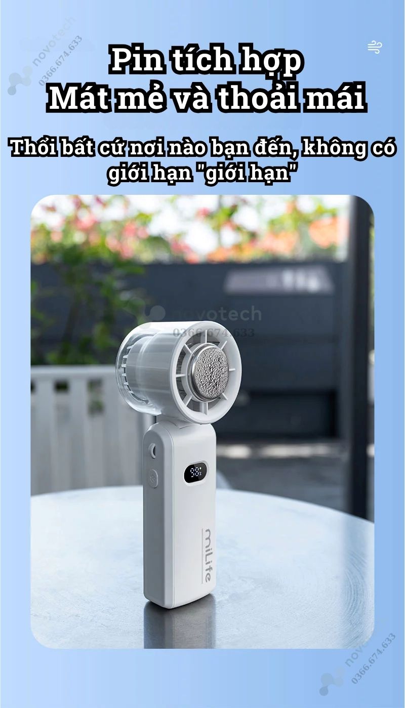 Quạt cầm tay mini Milife F3P có sò lạnh, 100 cấp độ gió