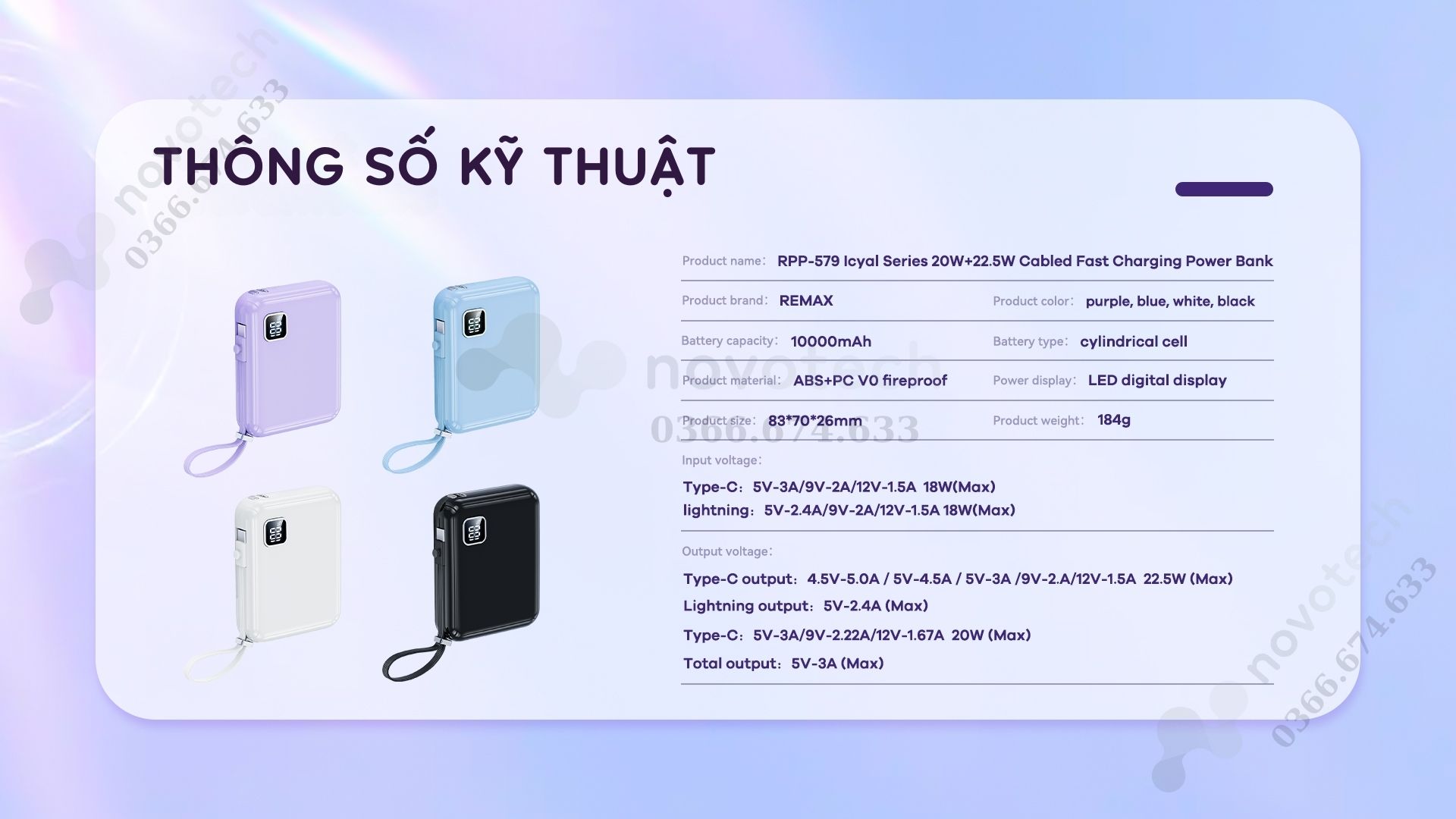 4. Thông Số Kỹ Thuật Sạc Dự Phòng Remax RPP-579